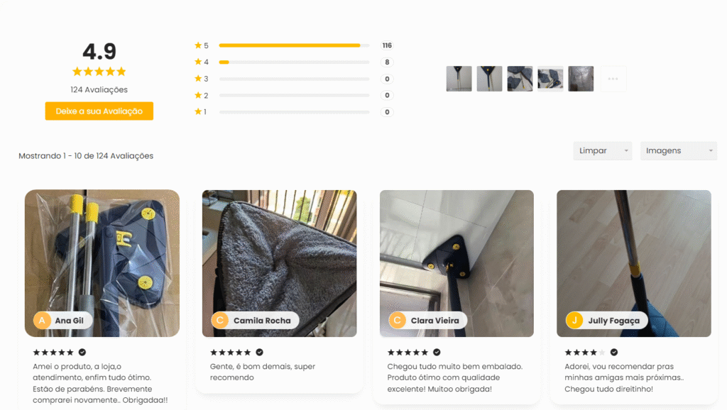 Você limpa a casa super rápido e sem respingar no chão, sem ficar molhando a casa toda. E melhor de tudo, sem molhar as mãos, porque não precisa ficar torcendo o pano.